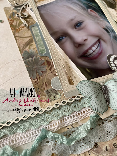 Back again with another design team layout for 49 and Market. Teal is one of my most favourite colours and when I see the full collection of Vintage Artistry Colour - Sky and the teal on the embellishments sheet I did a little happy. I matched it up with lace, Jute and flowers from the beautiful collection 49 and Market has.